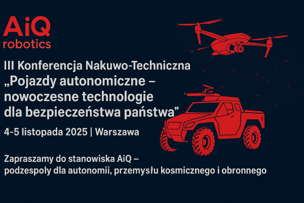 W dniach 4. i 5. listopada 2025 roku firma AiQ robotics P.S.A. uczestniczyła w charakterze partnera w III edycji konferencji „Pojazdy Autonomiczne 2025 – nowoczesne technologie dla bezpieczeństwa państwa” zorganizowaną przez Wojskowy Instytut Techniki Pancernej i Samochodowej oraz Sieć Badawcza Łukasiewicz – Przemysłowy Instytut Motoryzacji.